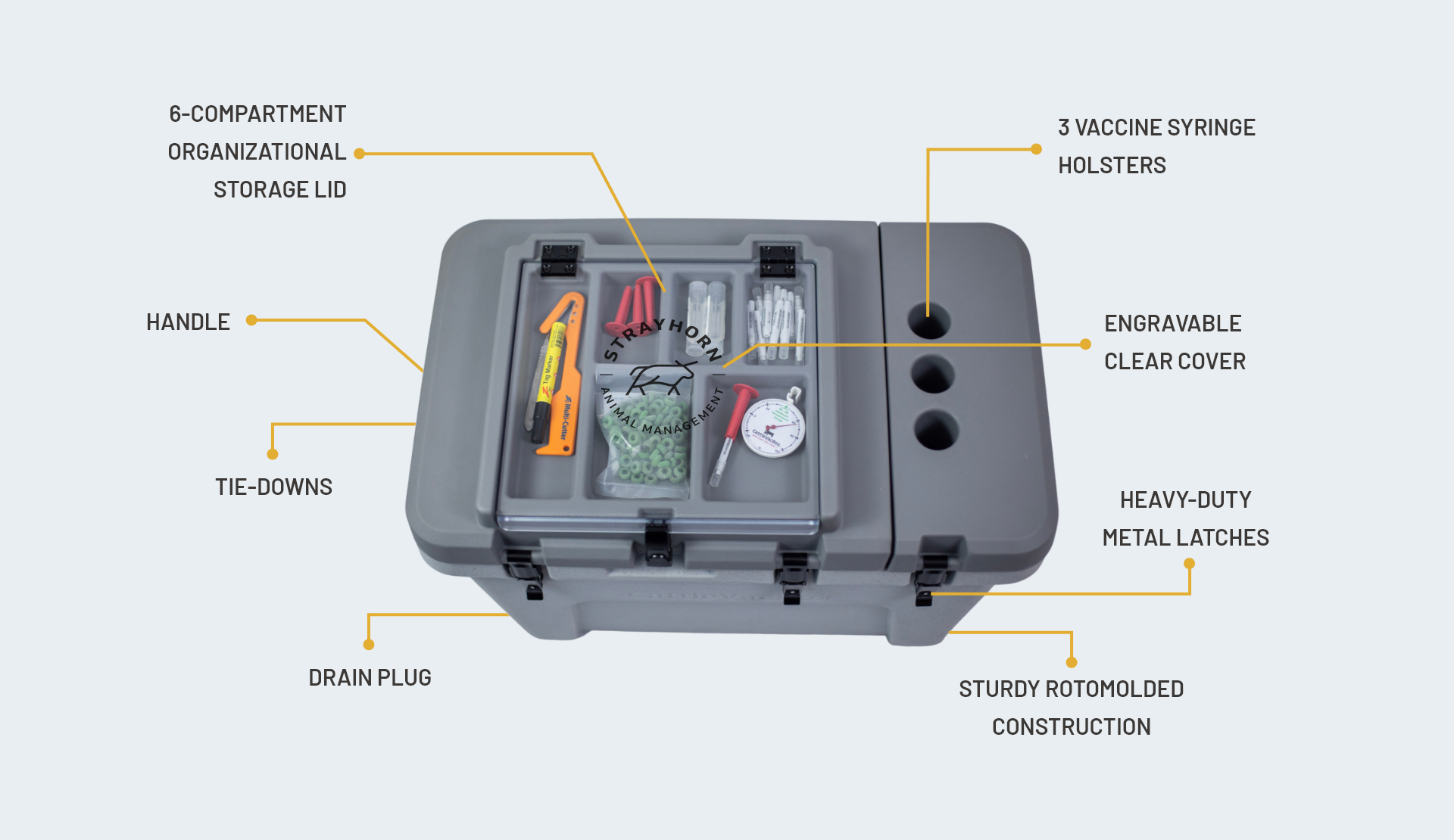 As our largest vaccine cooler, the Boss is set up for giving three shots out of it's color coded syringe holsters. With the same unbeatable quality as ever, we've taken your feedback to heart to redesign our most popular vaccine cooler with great new features.